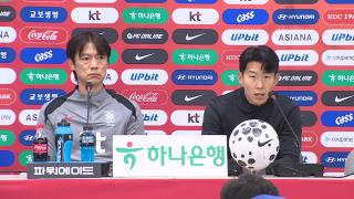 <발표자 : 홍명보 국가대표팀 감독 · 손흥민 선수> \"올해 마지막 평가전, 가장 중요한 건 승리\" \"올 해 마지막 A매치 승리로 장식하고 싶어” \"열심히 하는 선수들 때문에 분위기 더욱 좋아\" \"3년 전 월드컵에서 가나에 진 거 생각 안해\" \"월드컵 조추첨 포트2 걸려있어 매우 중요\" \"최선 다해야할 명분 충분이 있다고 생각\" \"김승규, 이명재 큰 부상 아니지만 출전안할 것\" \"월드컵 11회 나간 팀은 전 세계에서도 몇 안돼\"... 현황